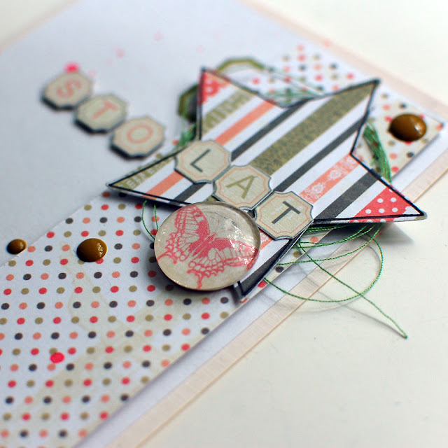 Pierwszy raz do zrobienia kartki nie wykorzystałam naszych baz do kartek, a to dlatego, że prezentem urodzinowym był karnet. Okładka karnetu była strasznie badziewna, została więc przykryta białym papierem i to zrobiło bazę mojej kartki.